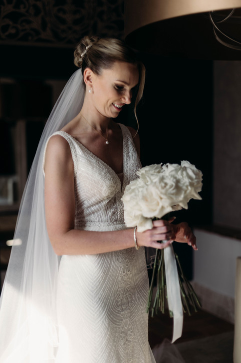 Un matrimonio con una bianca'atmosfera nella campagna toscana, una splendida villa circondata da ulivi. Una coppia di classe, elegante e romantica dall'Inghilterra.